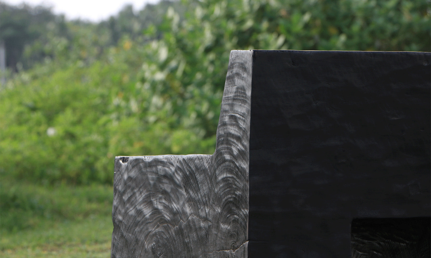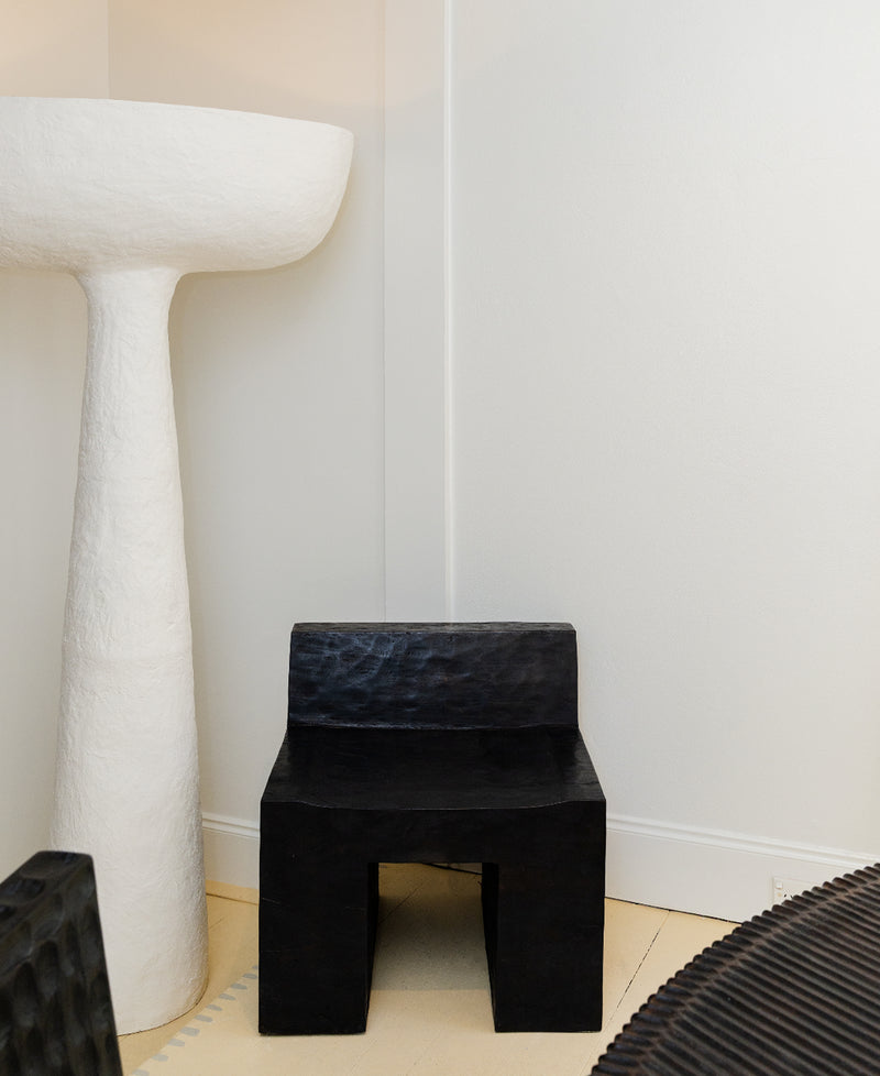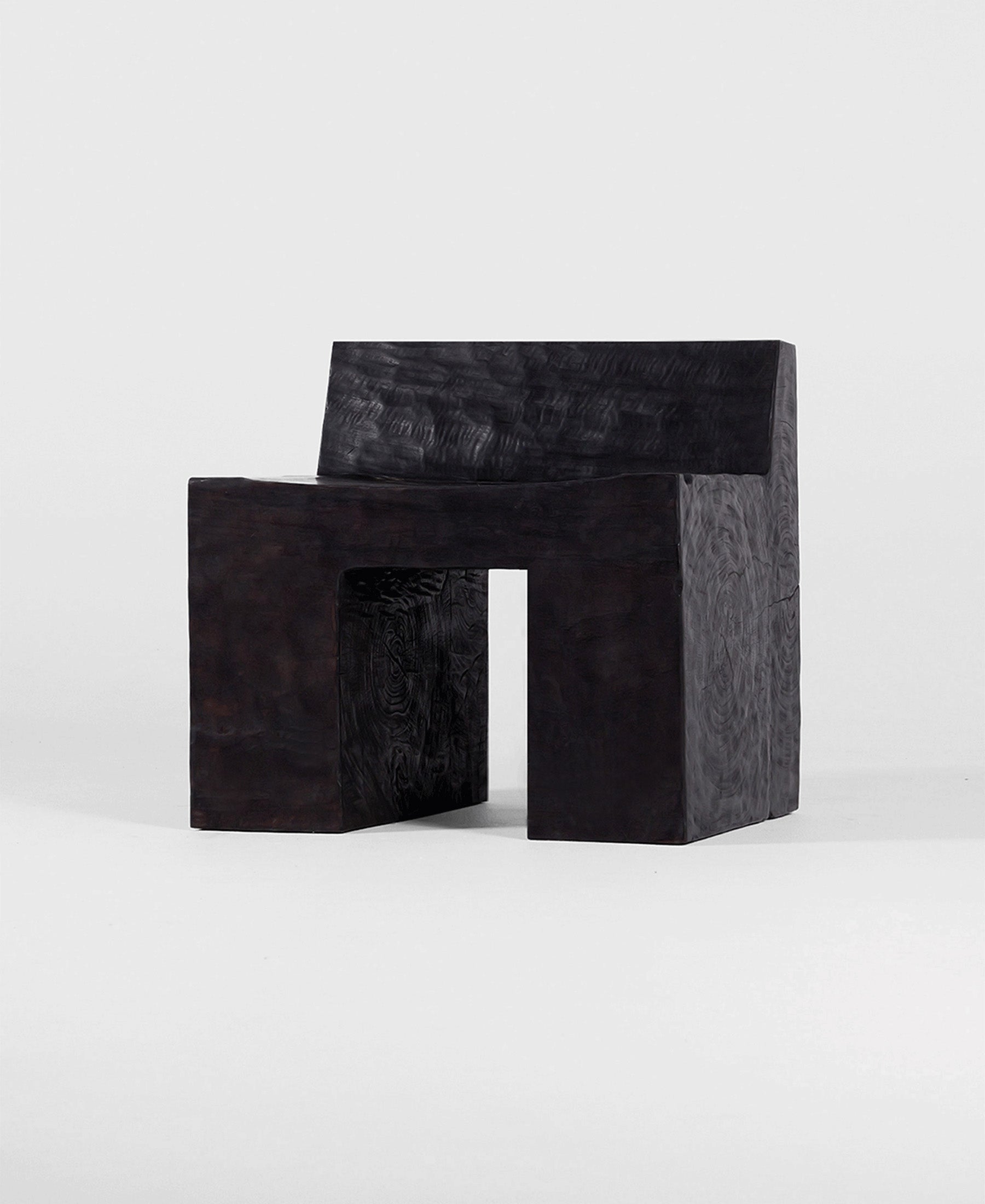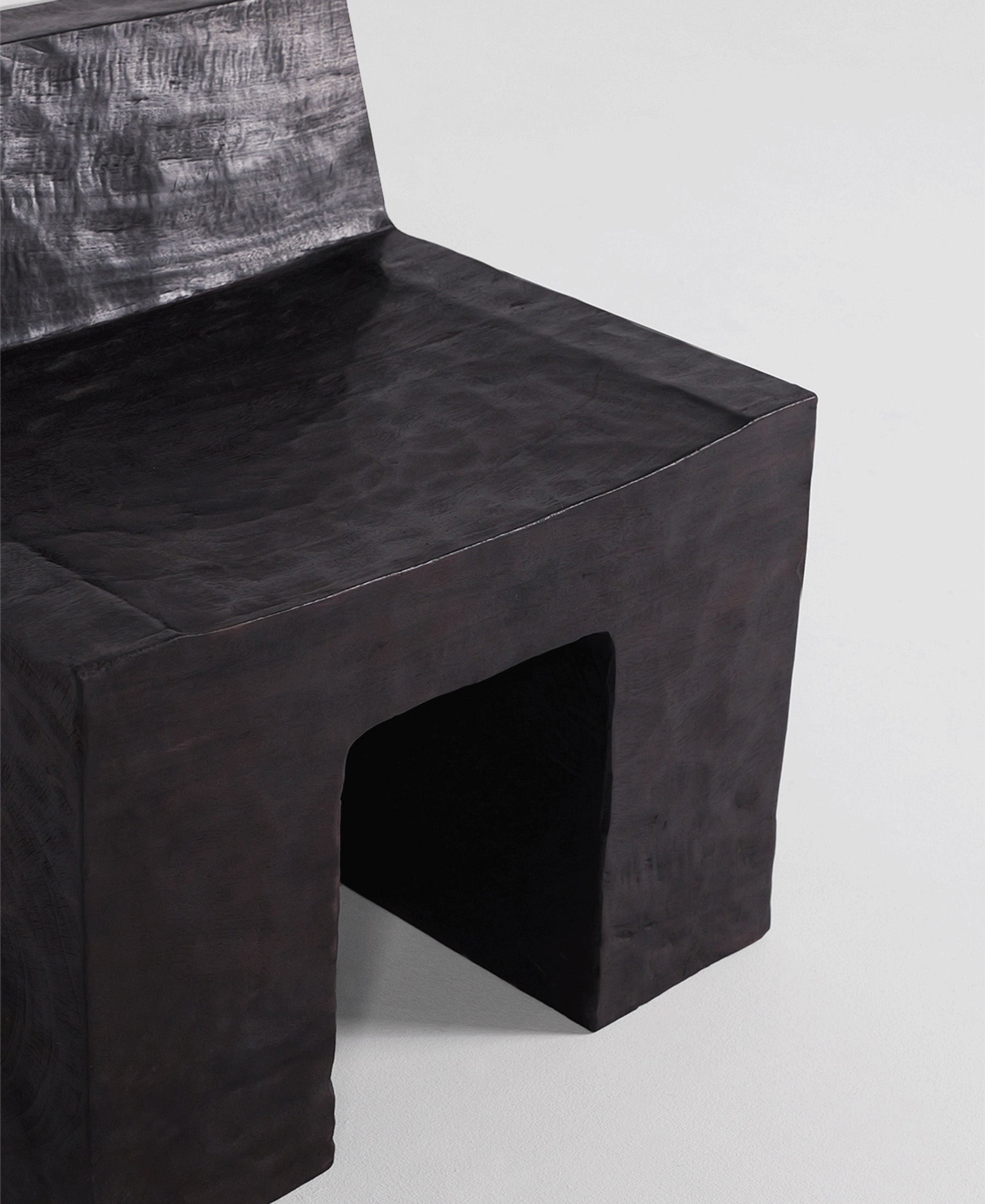 A rare and precious piece in the collection, owing to the dimension-defying size. Tasked with sourcing an antique log large enough to carve out this chair’s base, traditional woodworkers then craft the slab into this statement block.