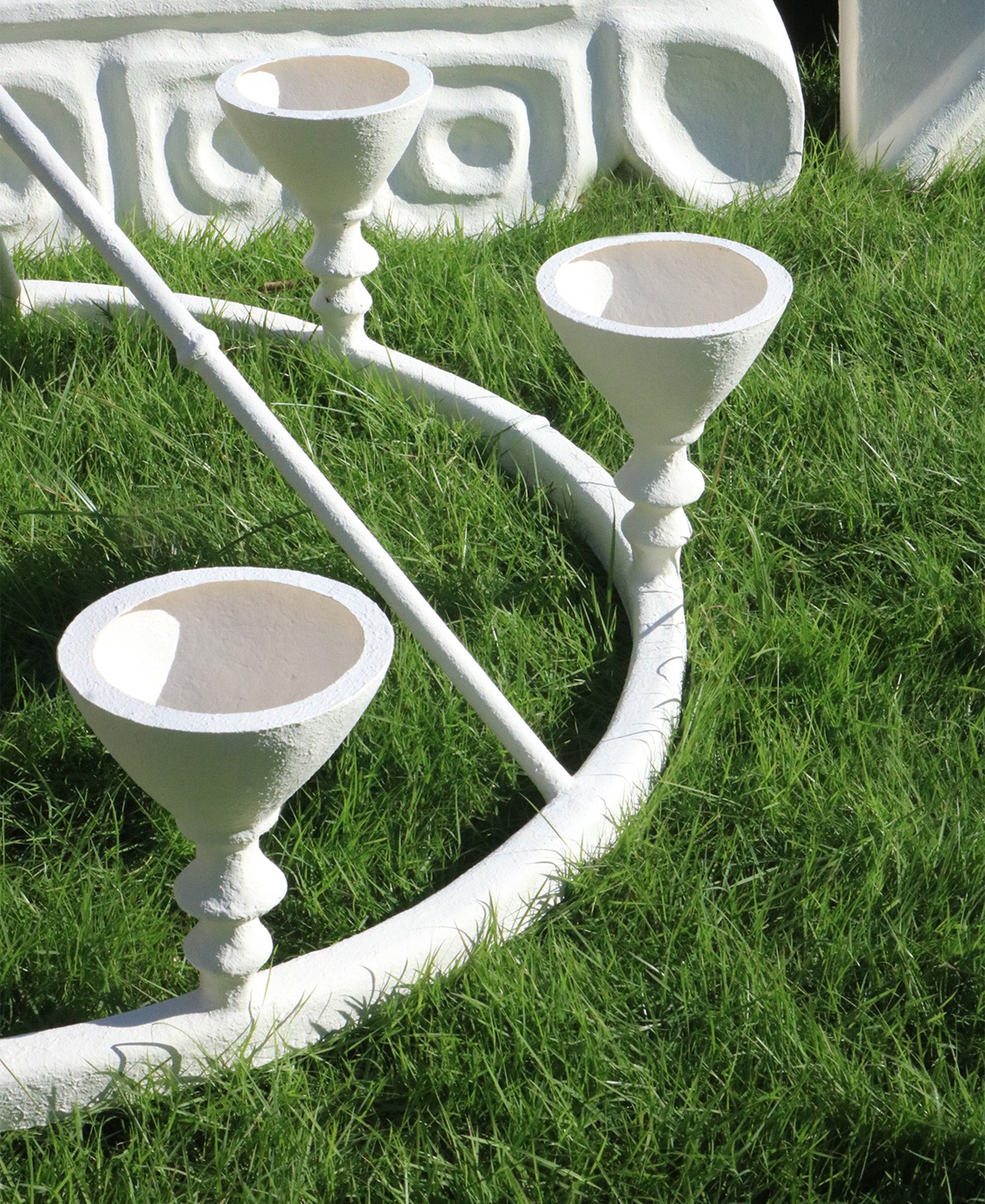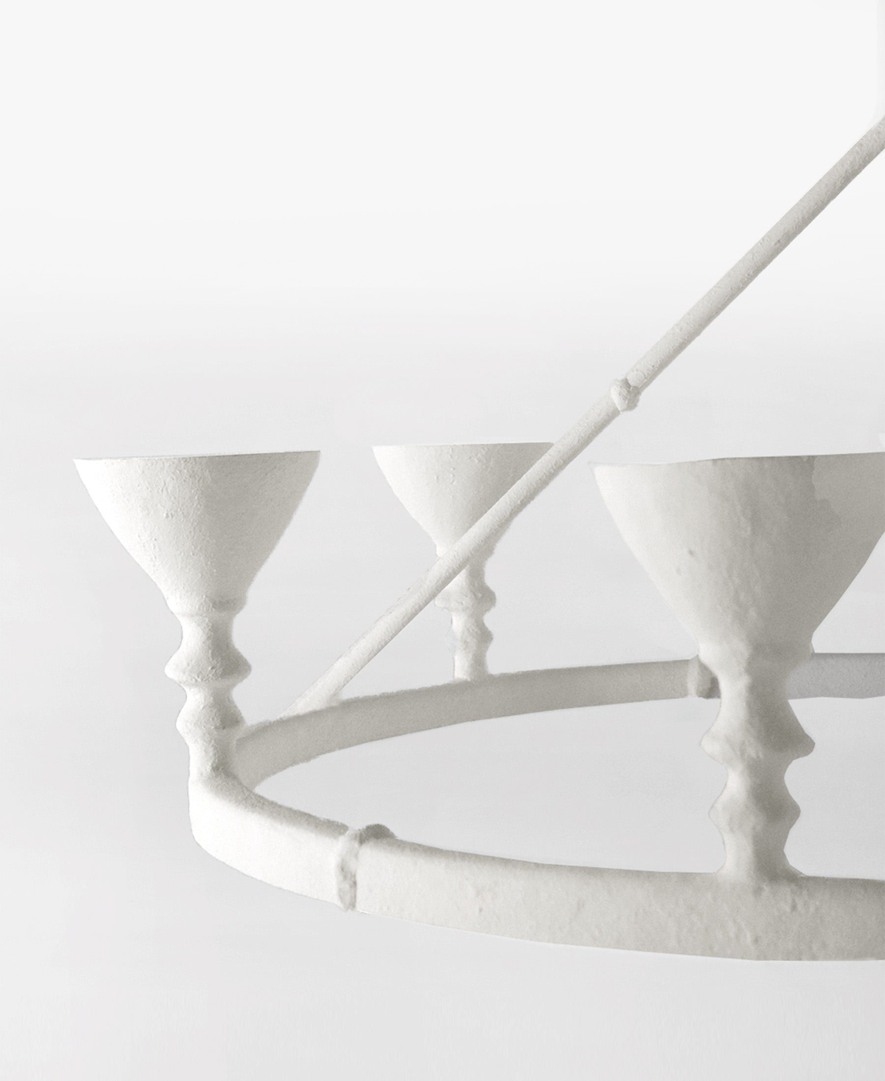 Using a hand-sculpted resin mould, a polymer plaster finish is applied by hand to achieve the off-white colouring. Massaged and swept around by the skilled craftsman with up to four coats added, it’s textural, asymmetrical, individual.