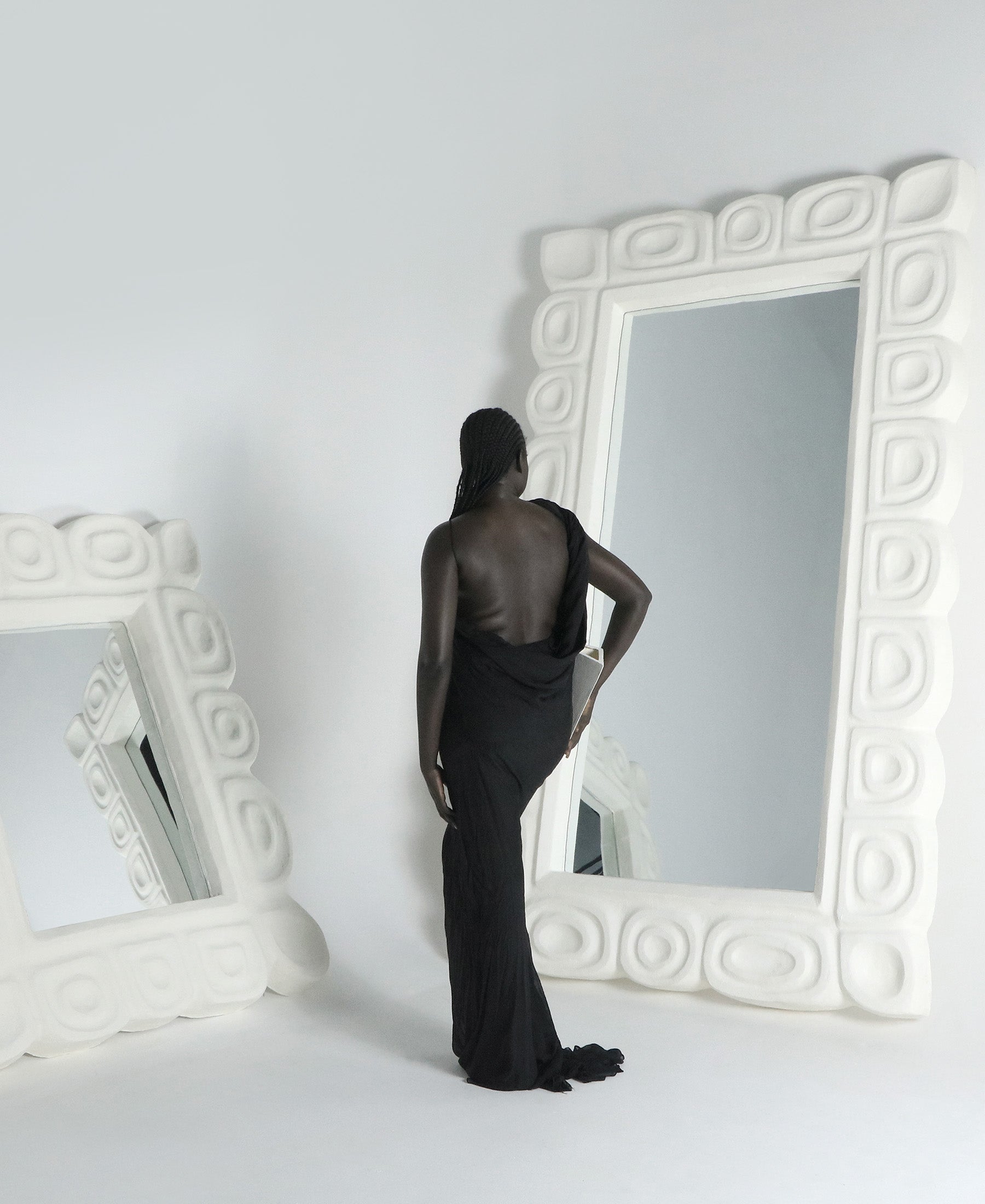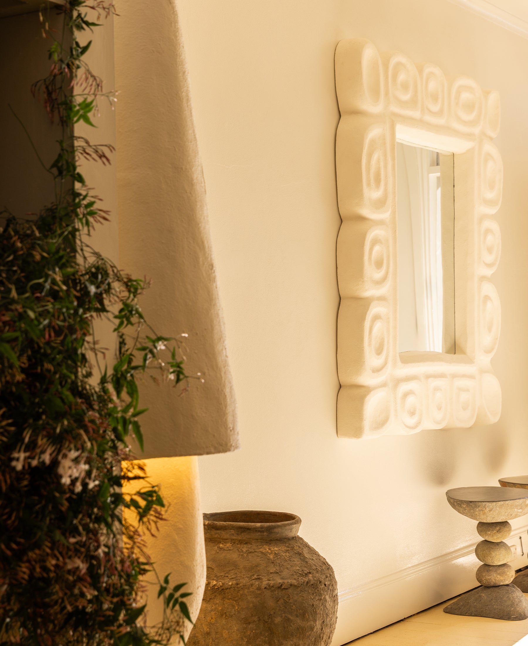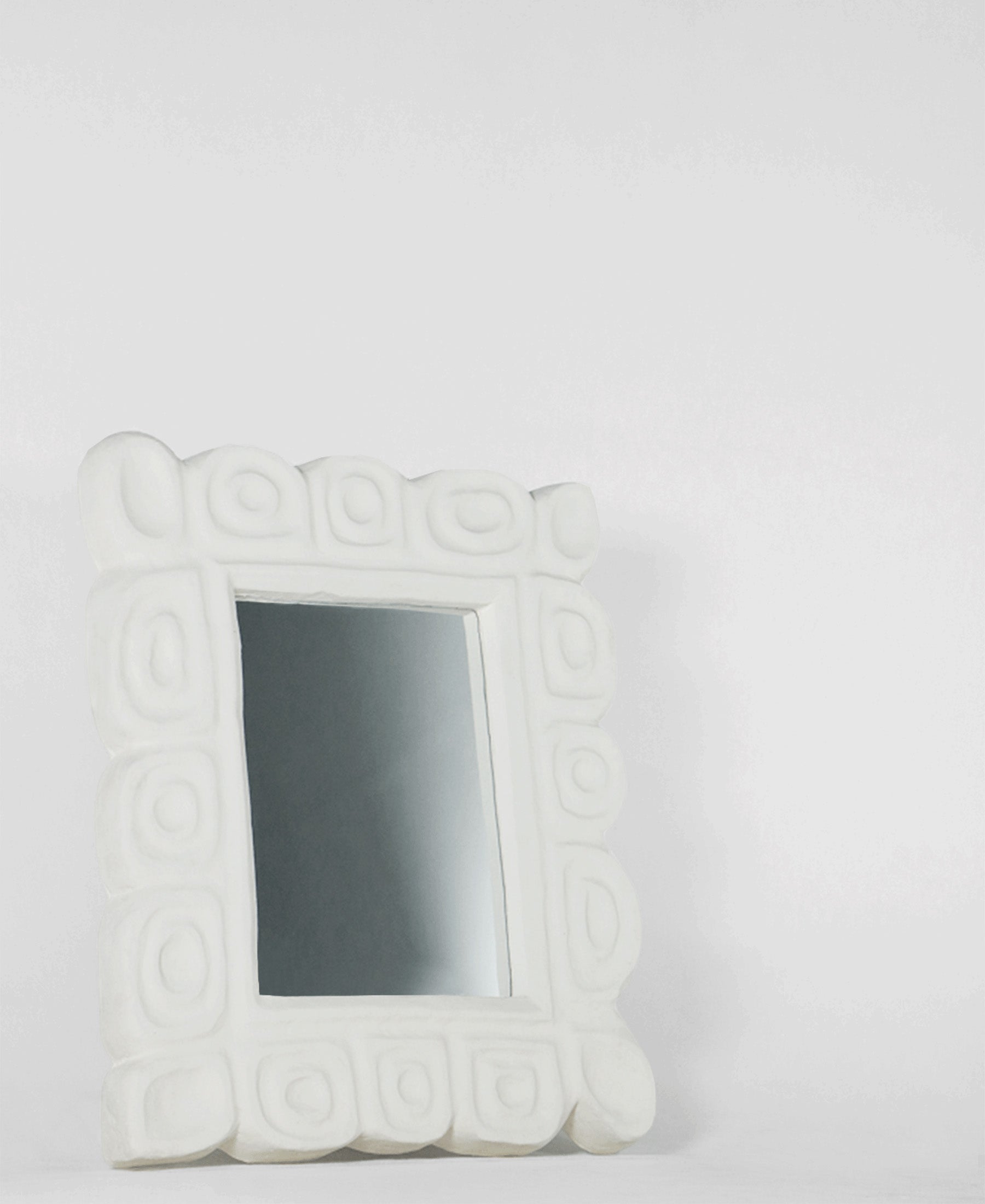 Elevate the mirror to a more artful, essential place. Commanding the room with its hand-sculpted frame, personal tales from the maker are embedded in each groove. Made to manipulate the space but not the stories that unfold.