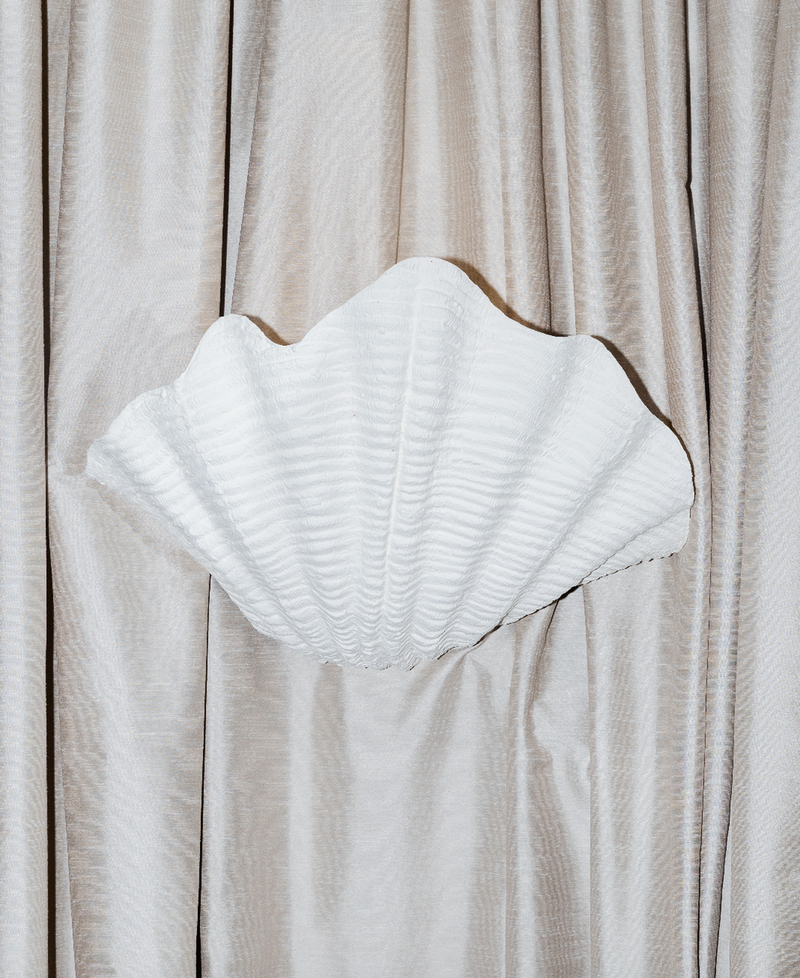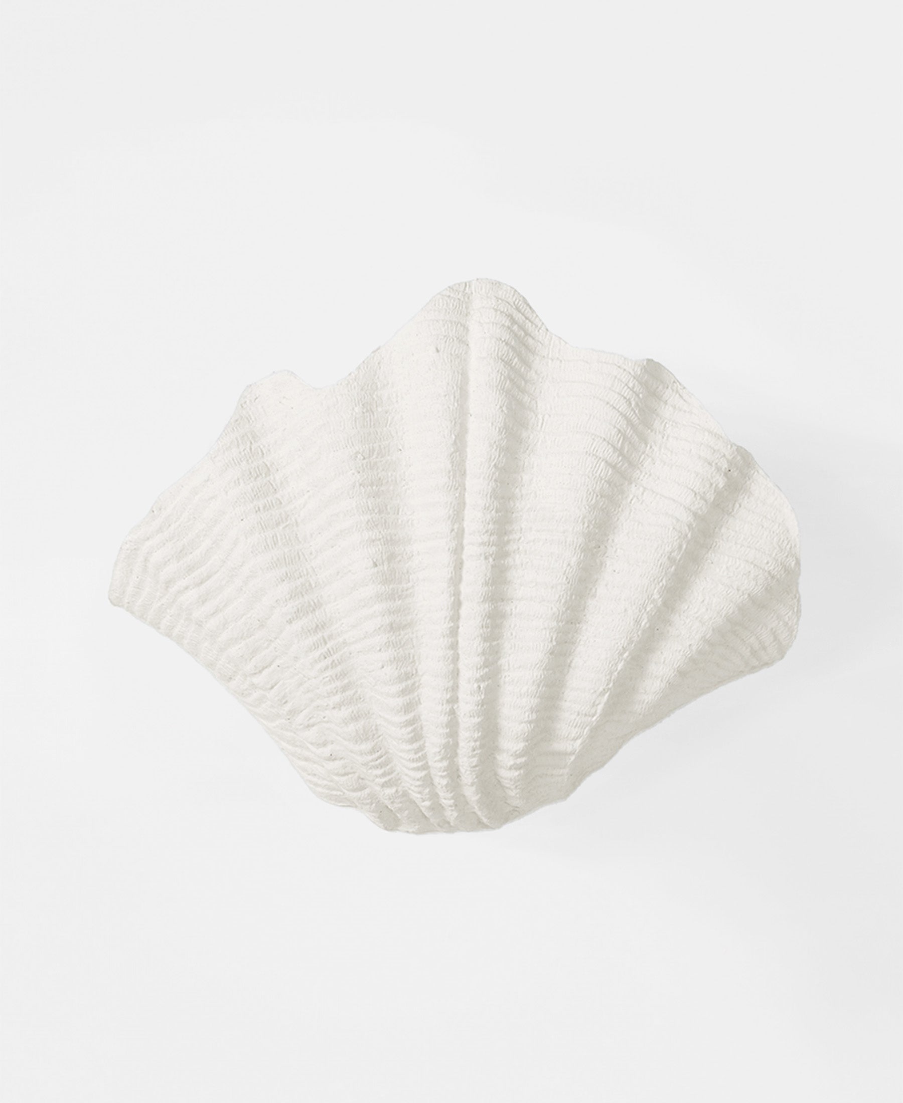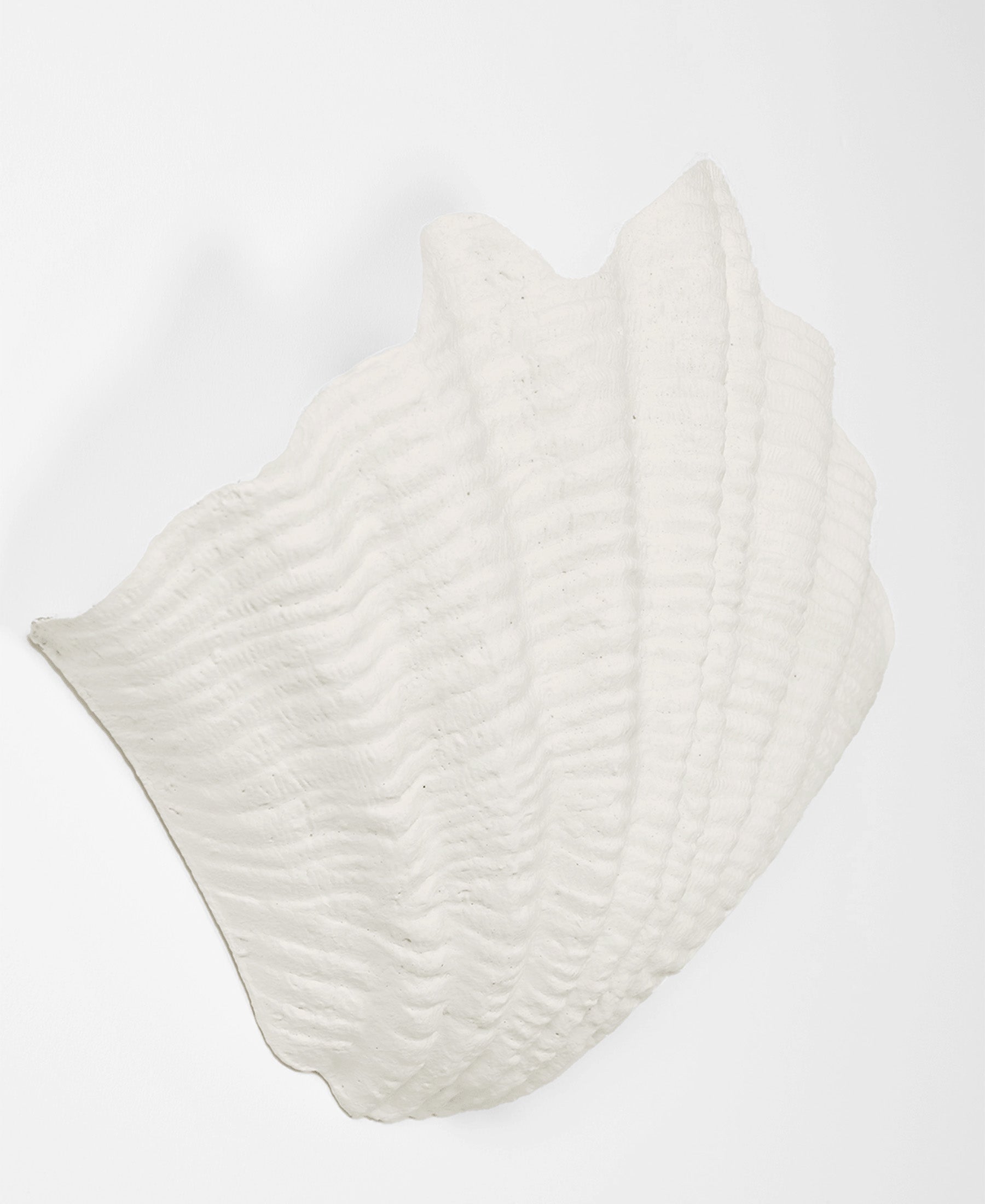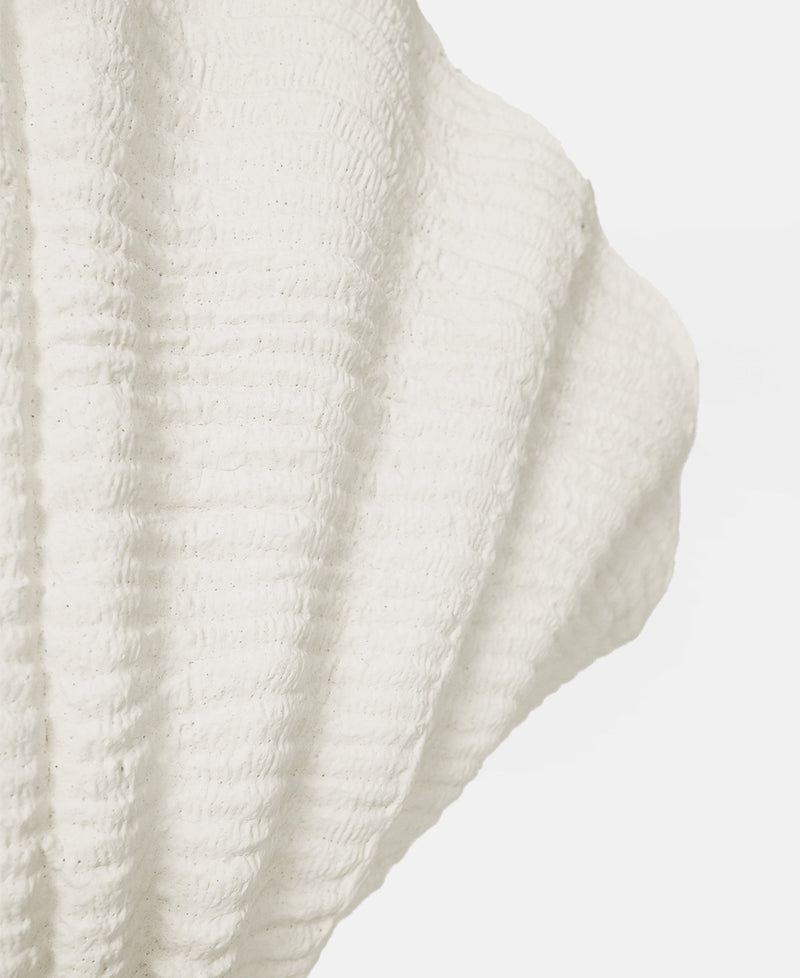 The resin mould is hand-sculpted to create a rippled surface that ascends from the base to the brim. To achieve the off-white colouring, a polymer plaster finish is applied – hand-brushed onto the mould, then massaged with up to four coats per piece. Subject to the individual movements of the maker’s hands, each is celebrated for its inconsistent brushstrokes and the unique craft.