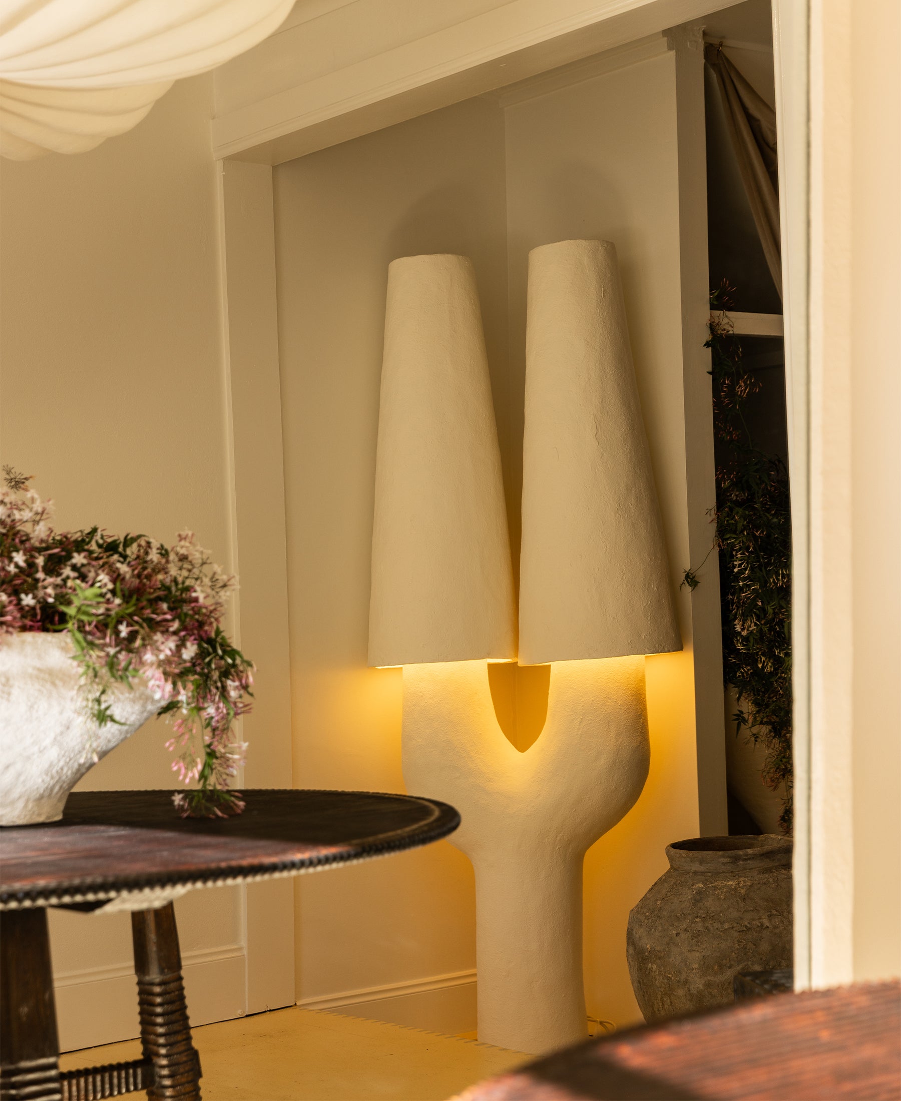 A lamp that stands with confidence – a focal point and functional feature. Moulded and painted by hand, the loudest voice is in the details, tempting conversations that linger well into the evening. Basking beneath the branches of its shapely figure.