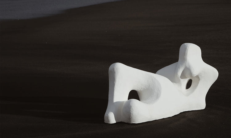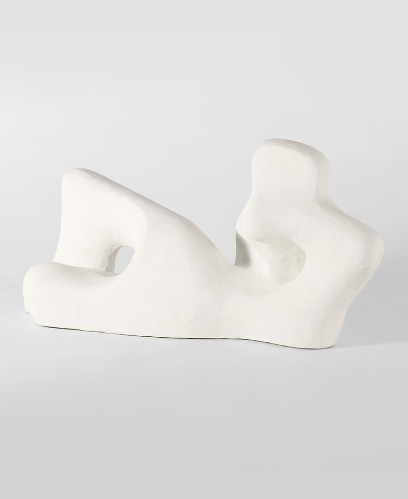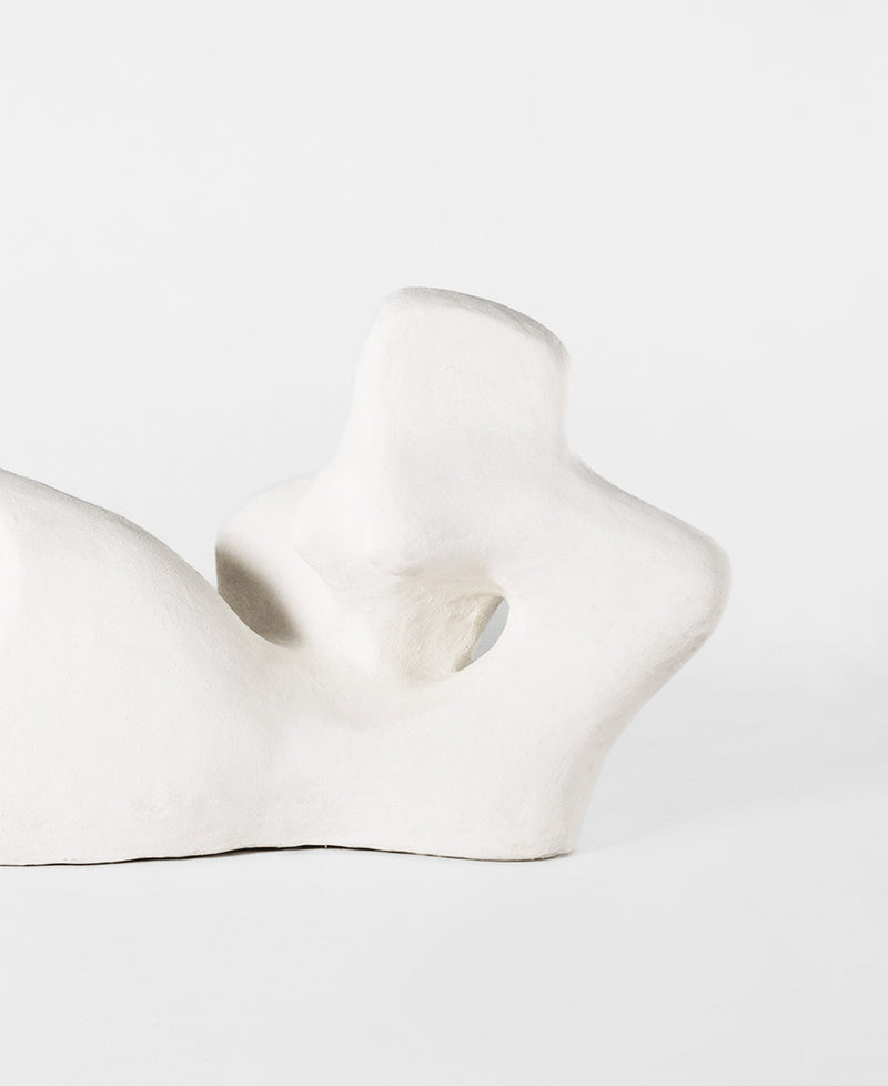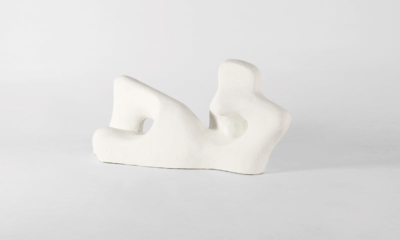 Made from hand-pressed and hand-painted concrete, the object is touched from all angles by the master craftsman. It is finished with a white polymer plaster, resulting in a textured, grainy surface that celebrates asymmetrical brush strokes and individual marks.