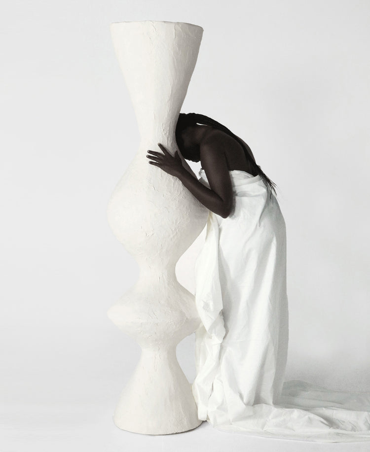 Statuesque with feminine curves, a sculpture that fills the void. She tempts physical touch, intentionally textured and ‘flawed’ as feeling flows from the maker’s hands to the sculpture. Cultures and chapters are connected, finding meaning beyond the here and now.