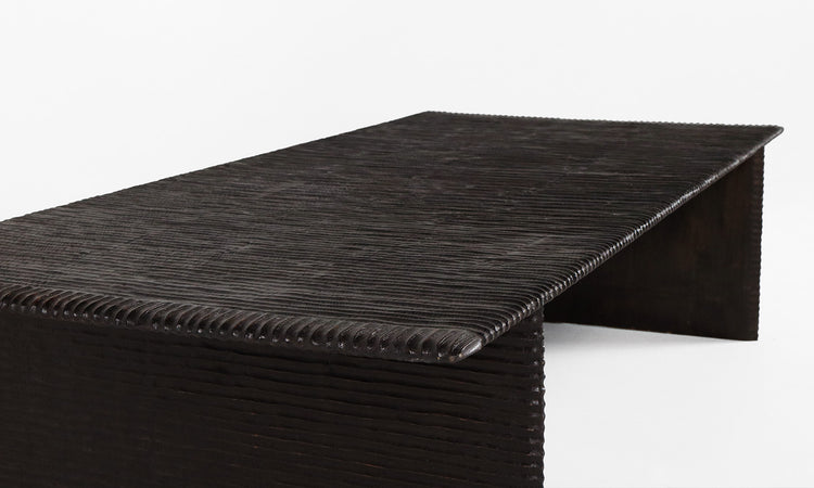 Trace the evolution of nature to hand to home with a sculptural coffee table to gather around. Made to order from 100 year-old timber, the centrepiece where knees touch, personal objects are on display, and tales from all corners of the globe flow.