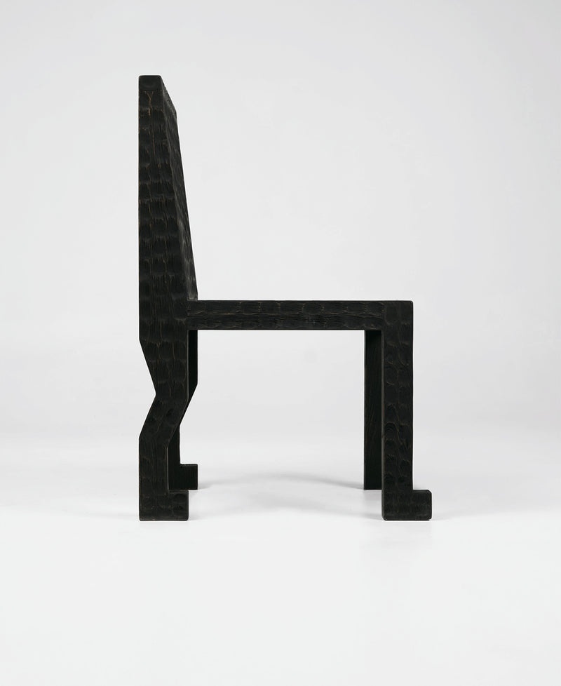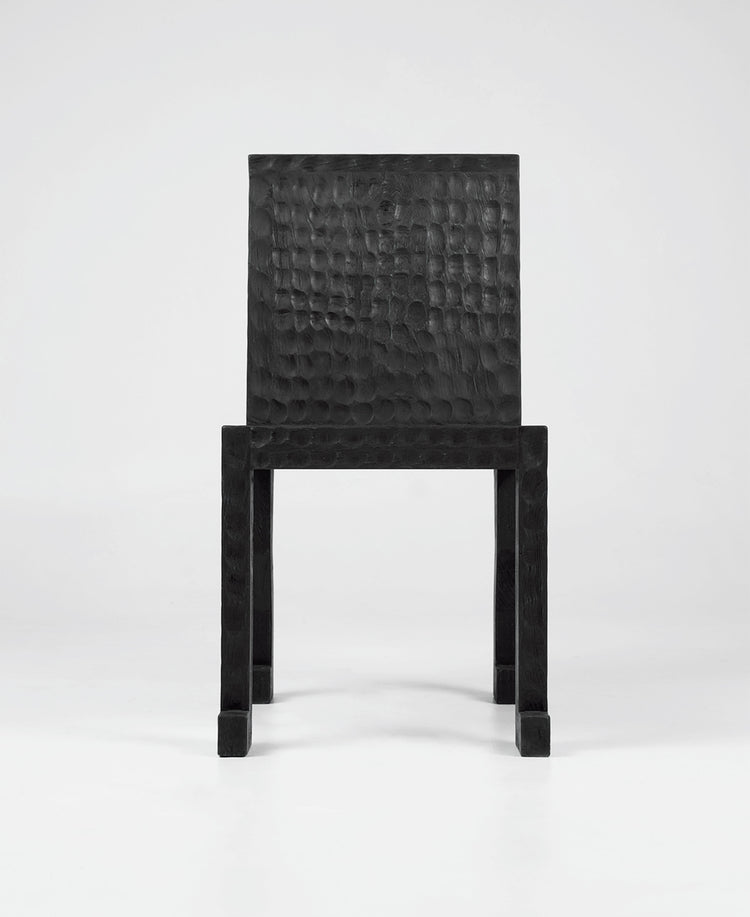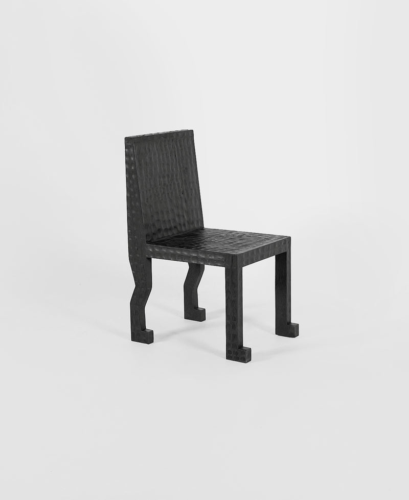 A dining chair handcrafted with animalistic features, hammered and carved with purpose over six weeks. Made to pause and reflect, narrowing in on the Egyptian markings and intricate details; a building block of communal spaces and flowing conversations.